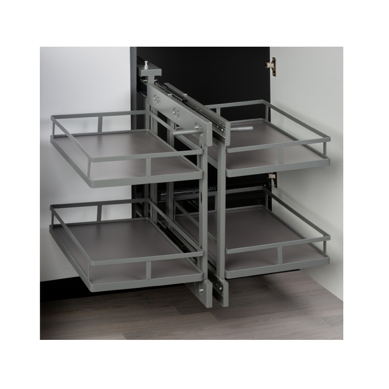 Cesto metálico esquinero con freno de extracción total, disponible en cesta metálica y en antracita