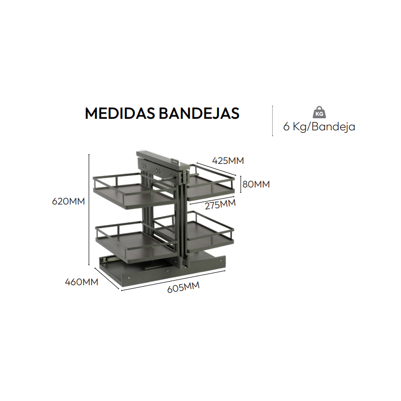 El set incluye 4 bandejas y la estructura.