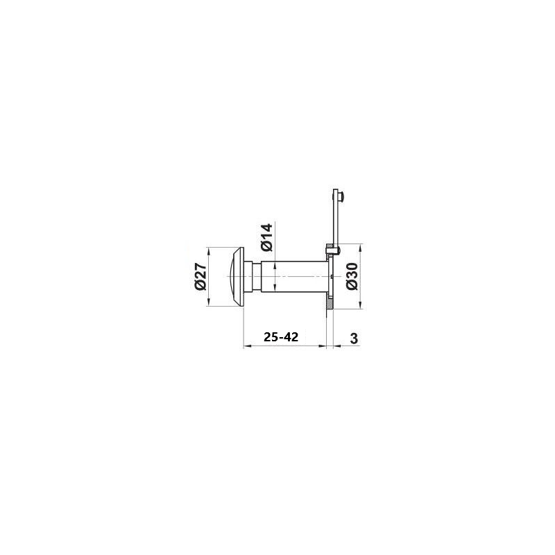 Mirilla para puerta latón, acabado en bronce. Mirilla para puertas con gran ángulo de 200° te ofrece una visión nítida y protege tu privacidad gracias a su tapa de protección integrada. Disponible en dos medidas. La referencia 53HP 15-25 debido a la construcción especial, nuestra mirilla se puede montar en puertas con un grosor de mínimo 15 mm a máximo 25 mm, la referencia 53HP 25-42 se puede montar en puertas con un grosor mínimo de 25mm, y un grosor máximo de 42mm, y la referencia 53HP 35-60 se puede montar en puertas con un grosor de mínimo 35mm, a máximo 60mm. Nuestra mirilla se puede utilizar fácilmente. Gracias a la superficie resistente a los arañazos, el riesgo de daños se minimiza. Fabricado en material de alta calidad, garantiza una mirilla con cristal auténtico de gran calidad a un precio asequible. De diámetro 14mm. Después de taladrar un orificio de 14 mm, basta con atornillar la mirilla en la puerta. Disponible en más acabados y otras medidas, consultar catálogo de Azero.