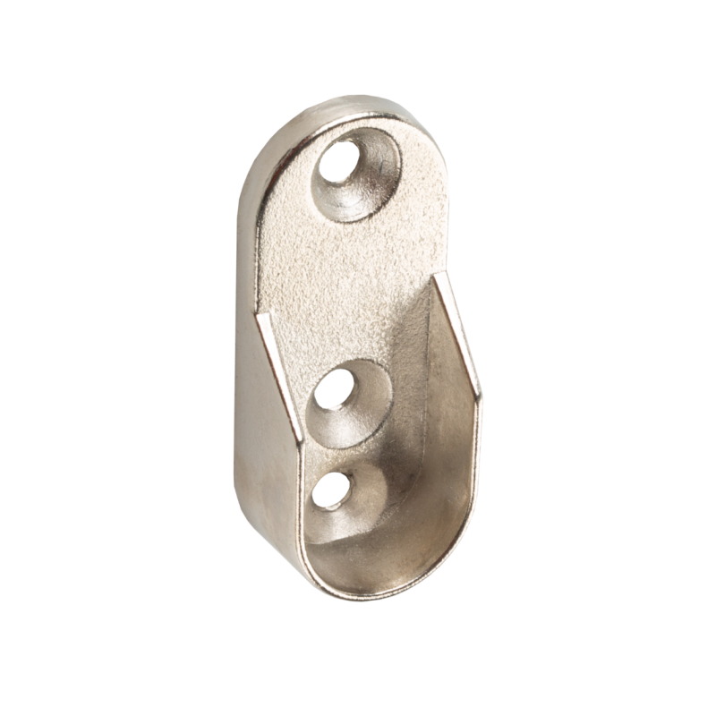 Soportes para varilla de armario ovalada, esta clase de soporte se fabrica con 3 orificios de montaje para instalar con 3 tornillos de madera, lo que le da mas resistencia a el montaje y aguante de peso a todo el sistema. Es muy adecuado para rieles en gabinetes, closets, alacenas y estante de tiendas para brindar soporte en ambos extremos.