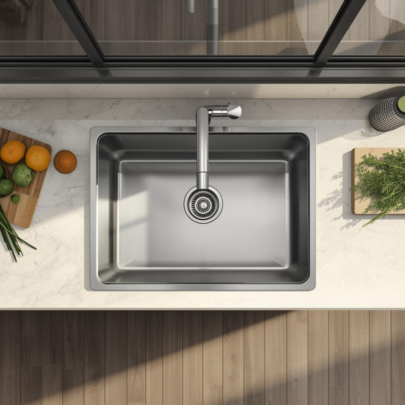 Gracias a su diseño versátil, puede instalarse tanto sobre encimera como bajo encimera, adaptándose fácilmente a todo tipo de encimeras de cocina. Su estética limpia y moderna lo convierte en una opción ideal para cocinas actuales, espacios exteriores o zonas de jardín.