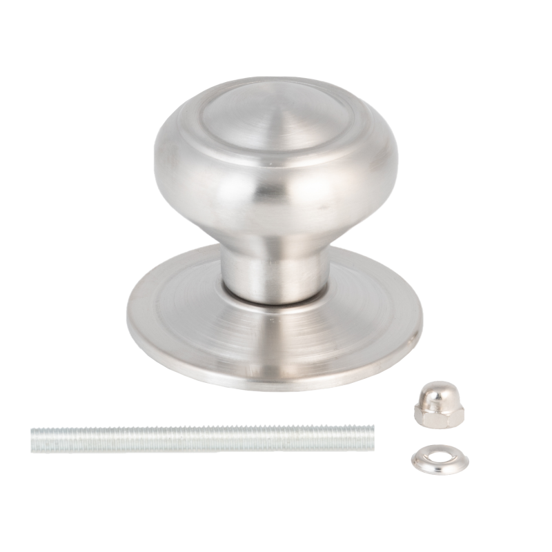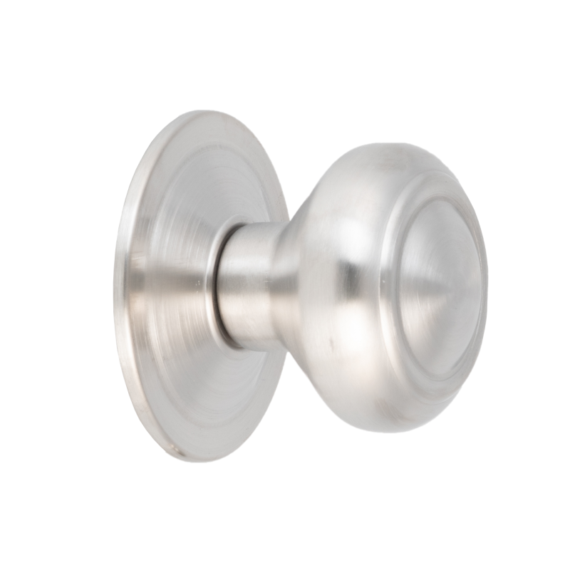 Pomo para puerta de entrada, base de 85mm, disponible en latón satinado-pulido brillo, en níquel satinado y en bronce